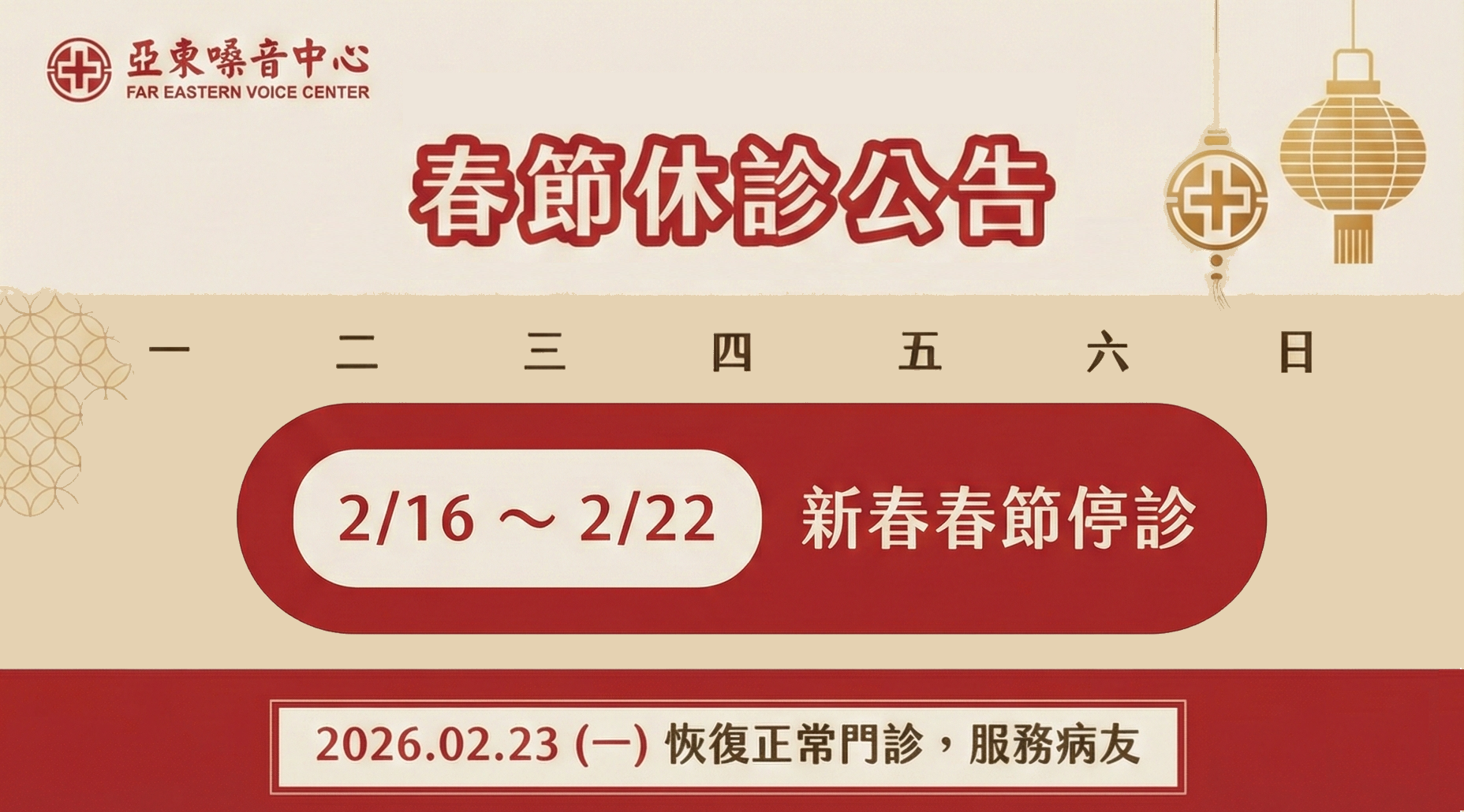 【門診公告】春節連假停診