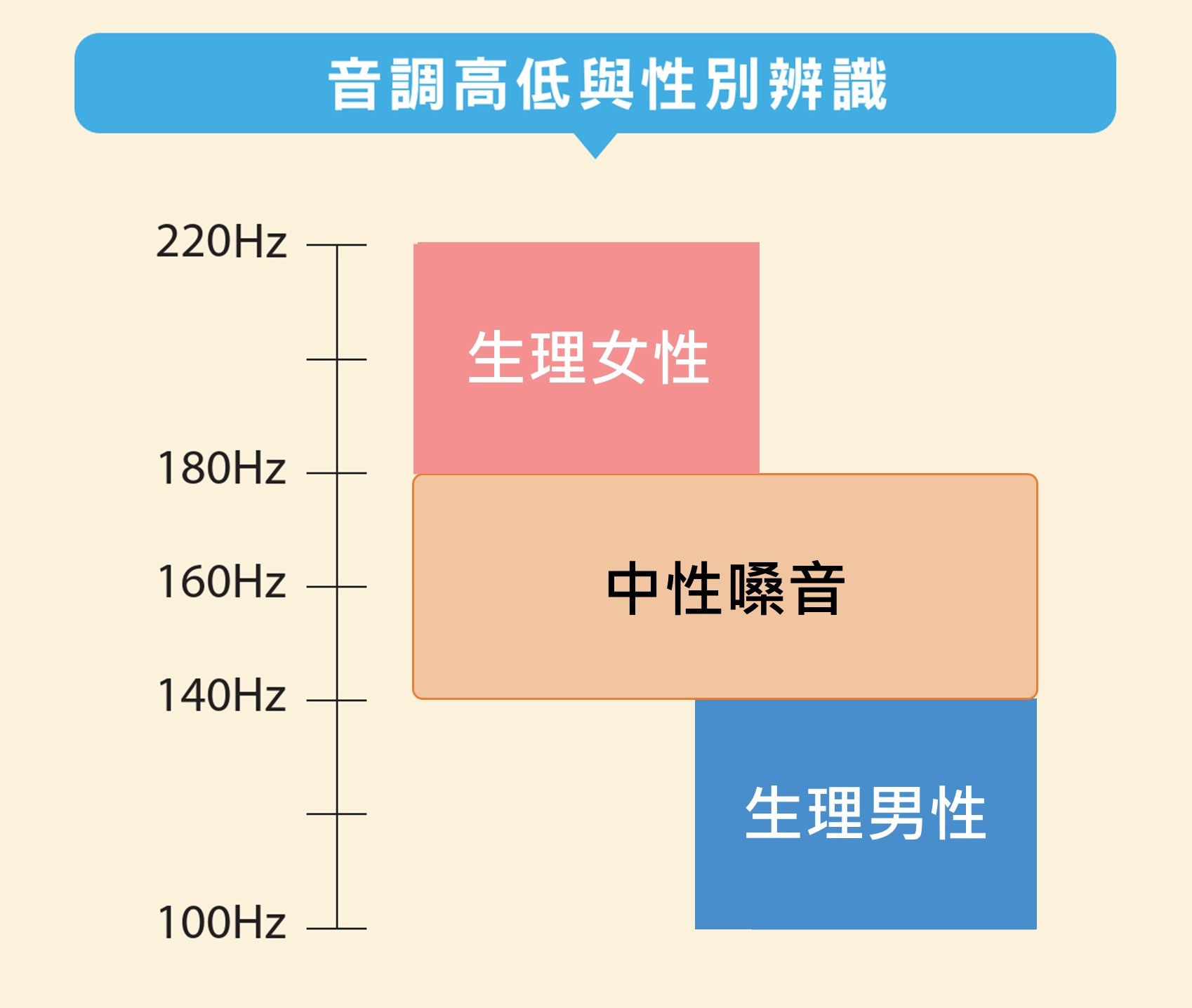 對(生理)男性來說,音頻調整至女性音域的目標為提高到180赫茲以上;反之,對(生理)女性來說,音頻調整至男性音域的目標則為降至140赫茲以下。